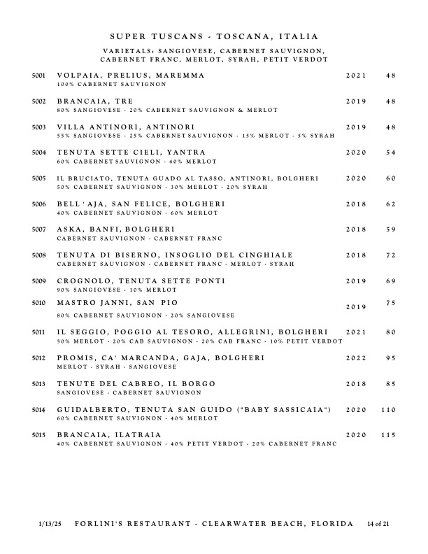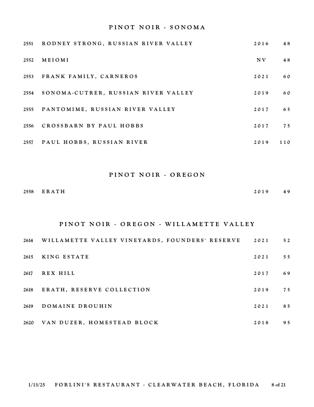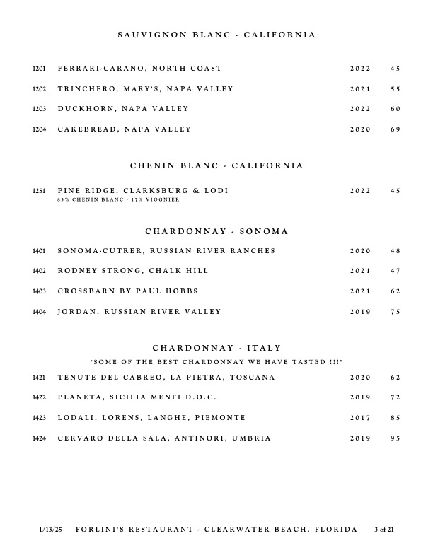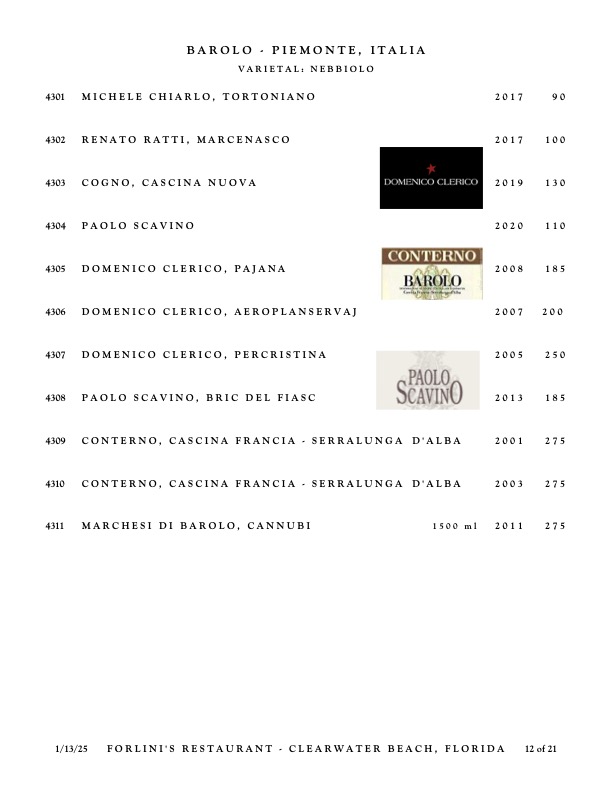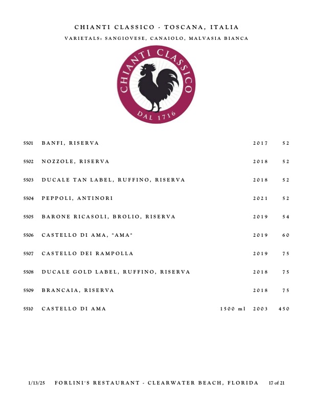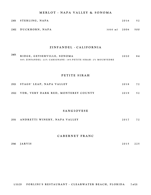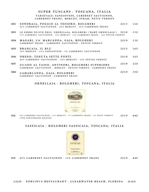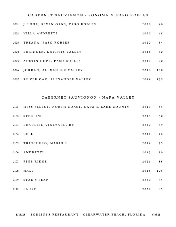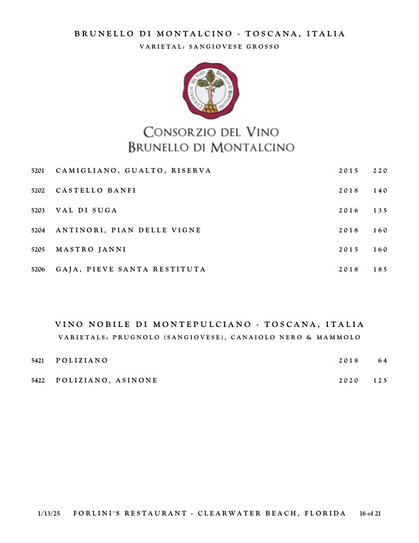 FORLINI’S makes every effort to ensure that wine list items, vintages and prices listed on our website are up to date and correct. However, items, vintages and prices listed on our WEBSITE MENU are NOT GUARANTEED and are subject to change without notice.